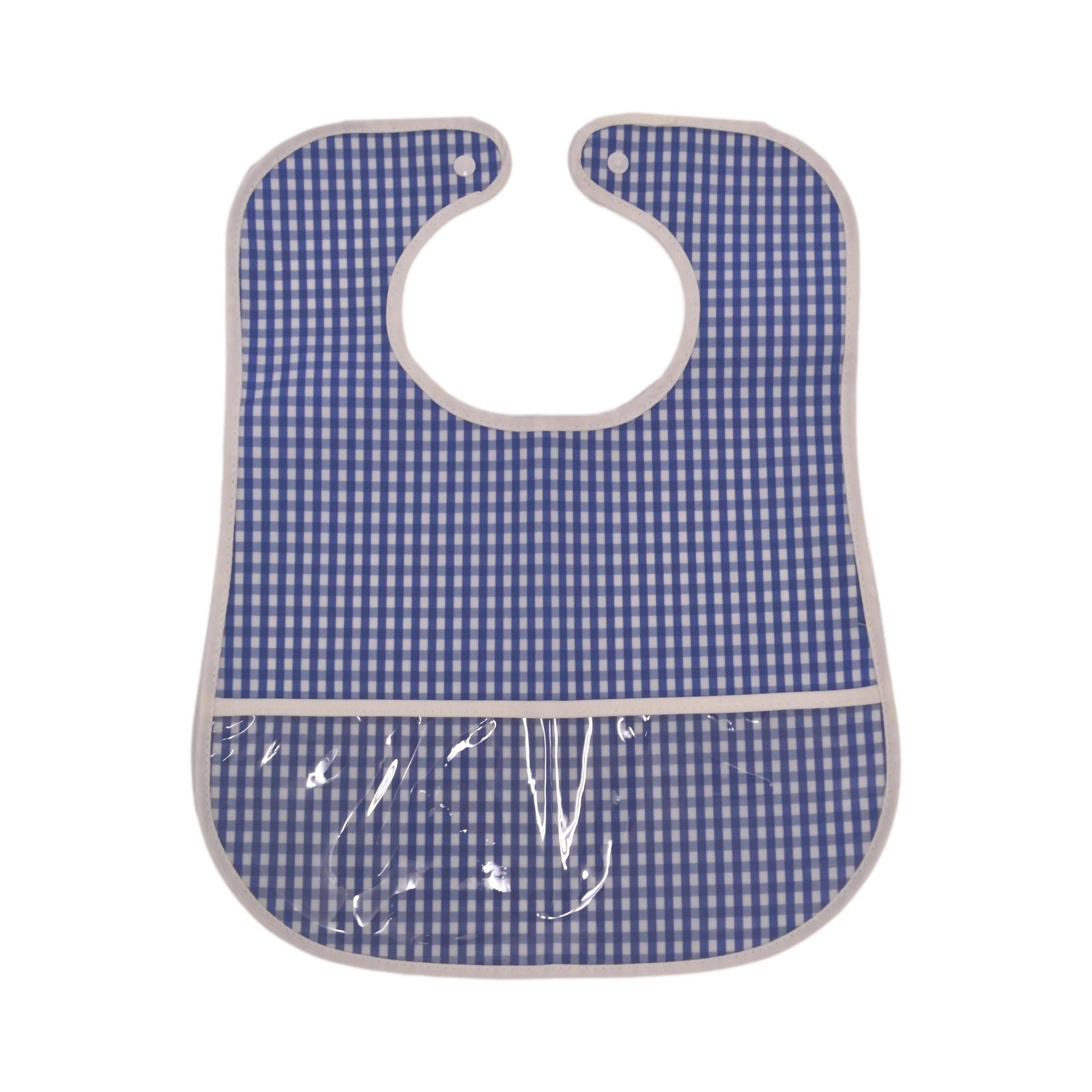 Your little ones will look super cute at meal and snack time with our Clean Up Bib. This full coverage bib snaps at the back of the neck and has two front pockets to catch crumbs. These are made in TRVL's signature material that can be easily wiped clean. Comes packed in a cute cotton drawstring bag for easy display and storage.